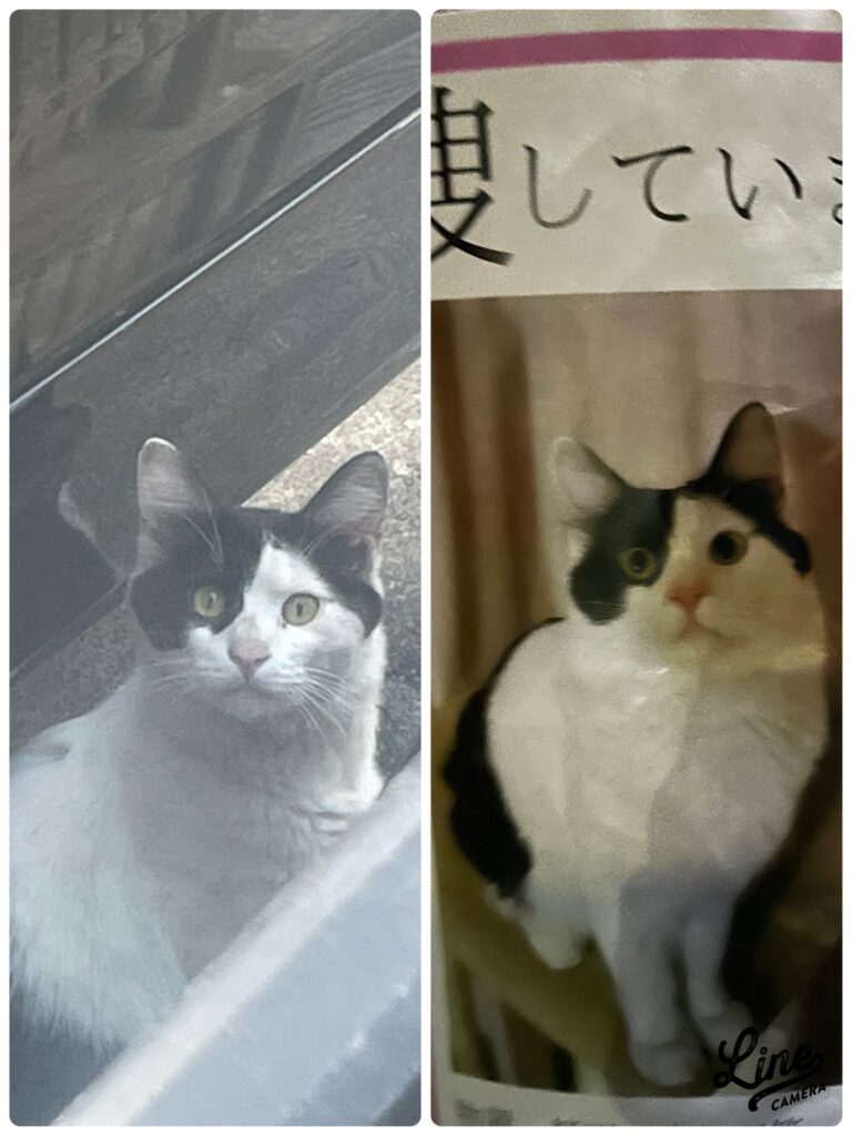 翌日、家の前の電柱に「猫探してます」の張り紙が!よく見ると捜索されてる猫ちゃんが何と!私が写真を撮ったあの子!