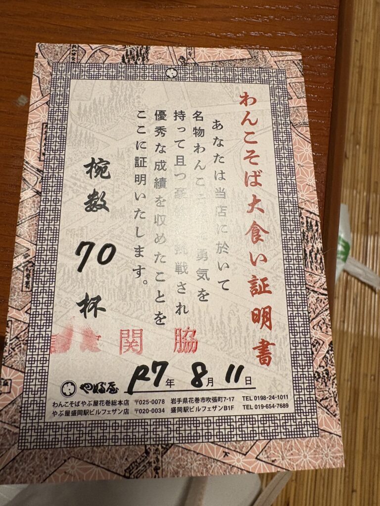 気づいたら 70杯 も食べてた!!関脇っていう称号(?)もらっちゃった。笑