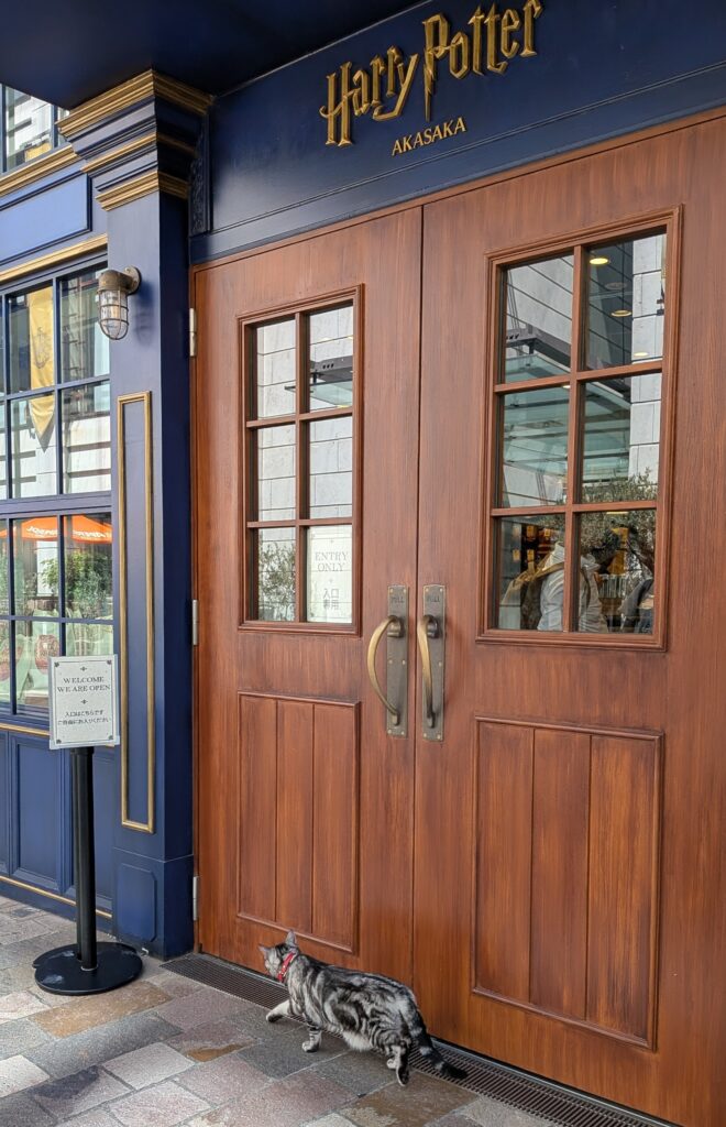 観劇前の散策では、ハリー・ポッターカフェの扉前に かわいい猫ちゃん発見🐱