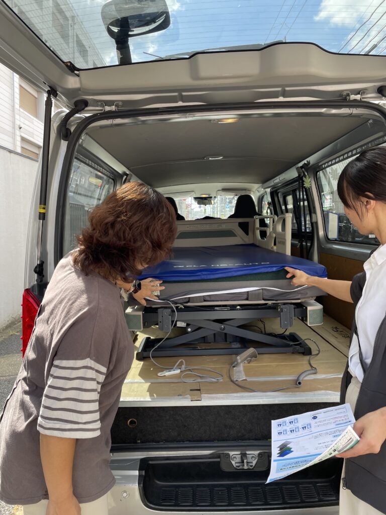 先日お世話になっている福祉用具さんが、新商品の説明、体験にみらいにいらしてくださいました😊
