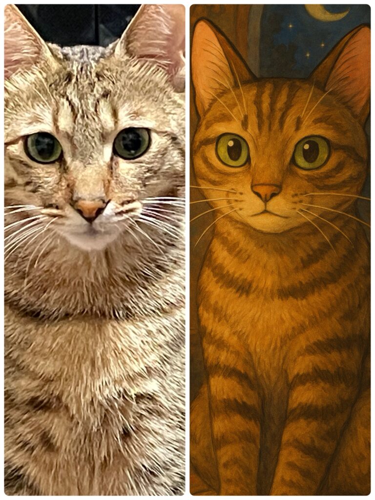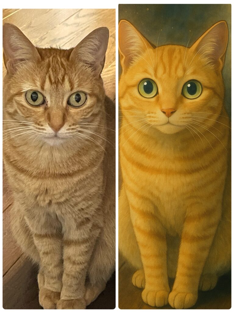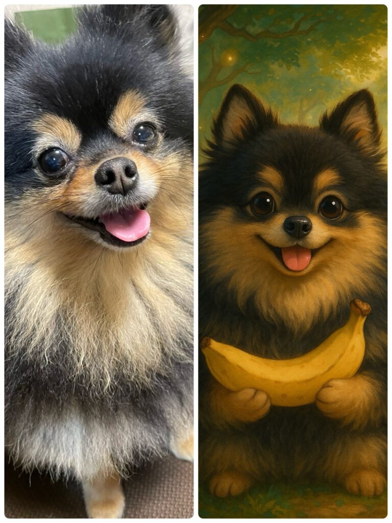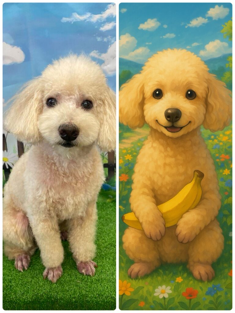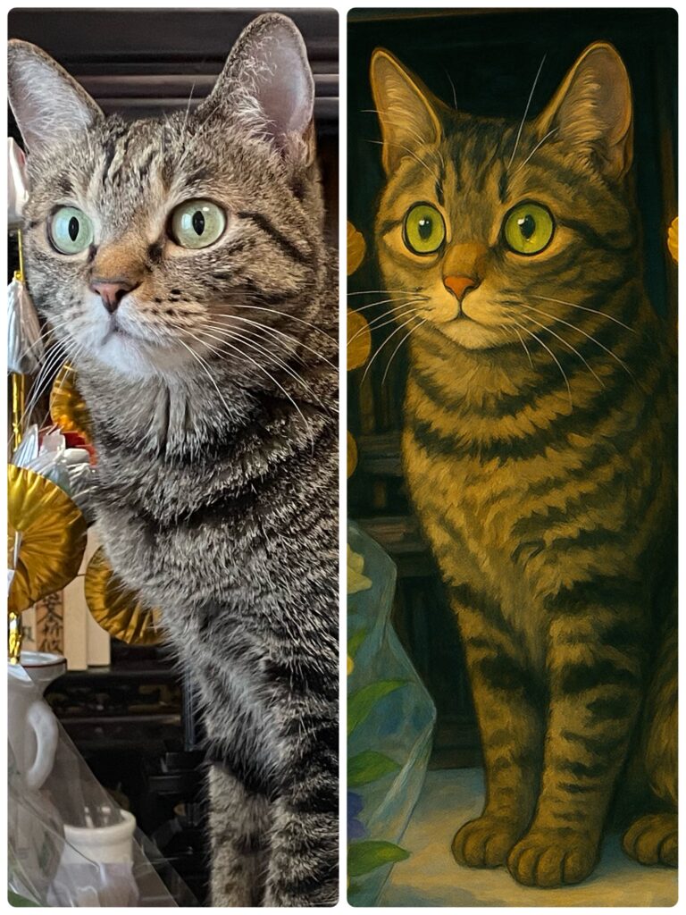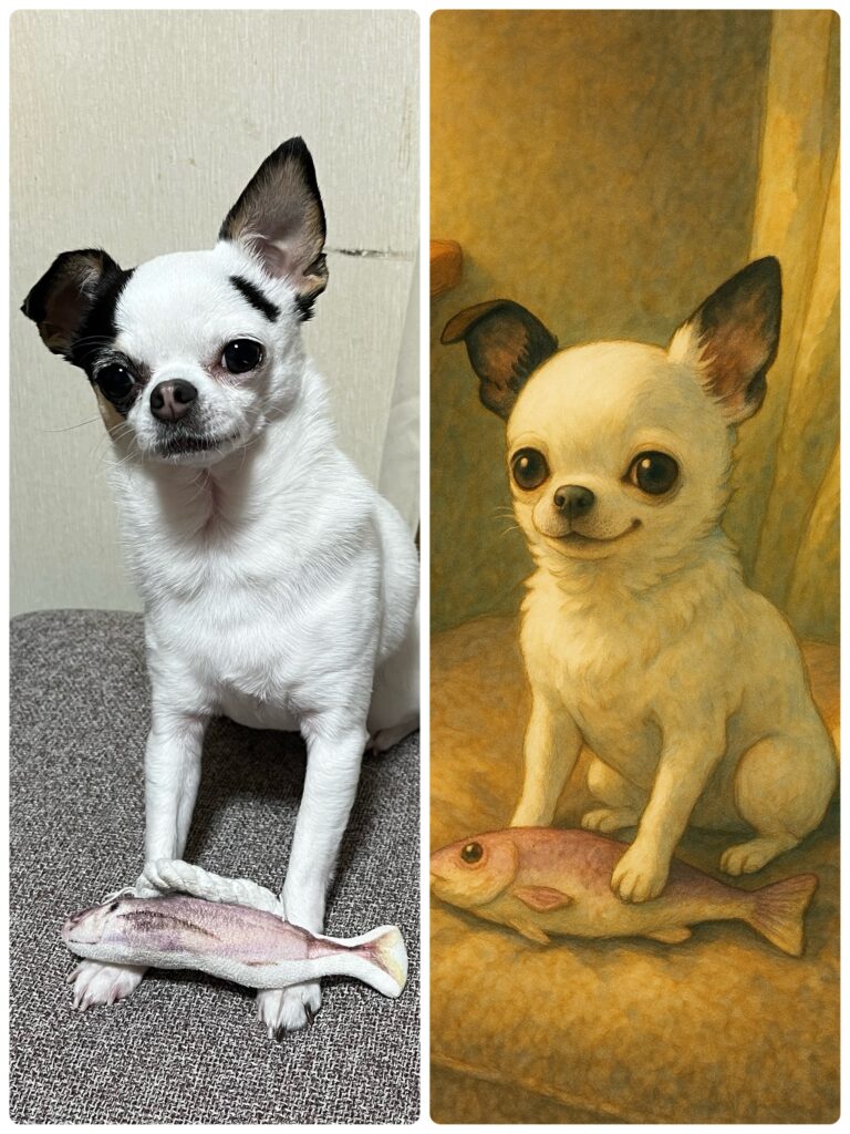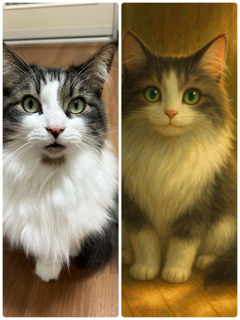 早速スタッフの大事な家族を絵画風やシルバニアファミリー風にしてみたら可愛いの極み!やみつきになりました!