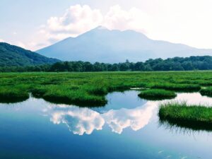 8月の尾瀬は、黄緑色の湿原が広がりとても涼しくて心地良かったです。 朝には霧が立...